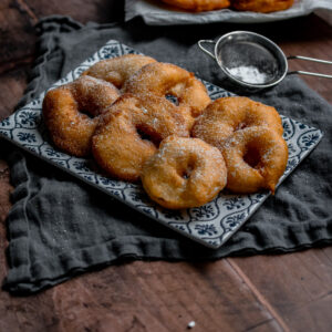 It’s that time of year once again, when apples are at their prime. Here in Luxembourg they are truly everywhere! I have said several times in previous apple recipes, during this time of year we tend to go to the Steinsel orchards to pick up the apples ourselves. Whenever we go we also like to eat something to eat and after a classic grillwurst, I always end up have a delicious plate of apple fritter rings! So for this year I have decided to recreate them myself for once!