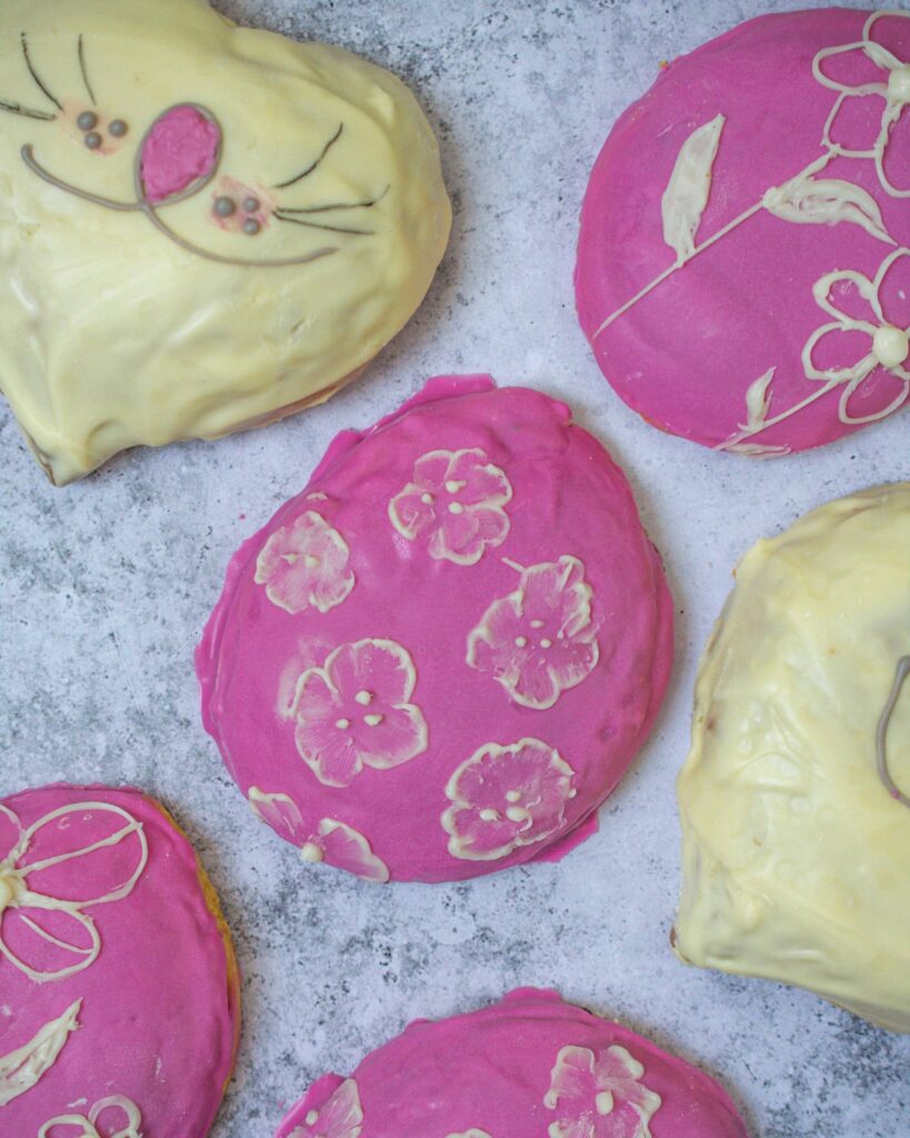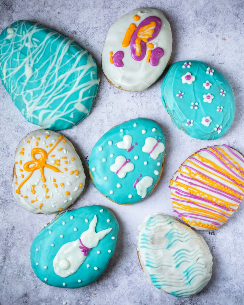 - Decorate the figolli with melted chocolate (or royal icing) and the toppings you like. Be creative as much as you like!
