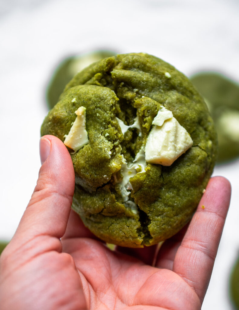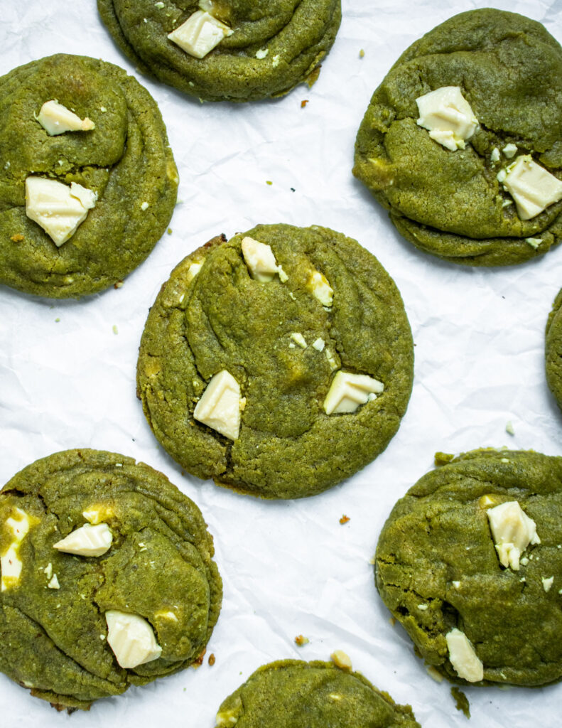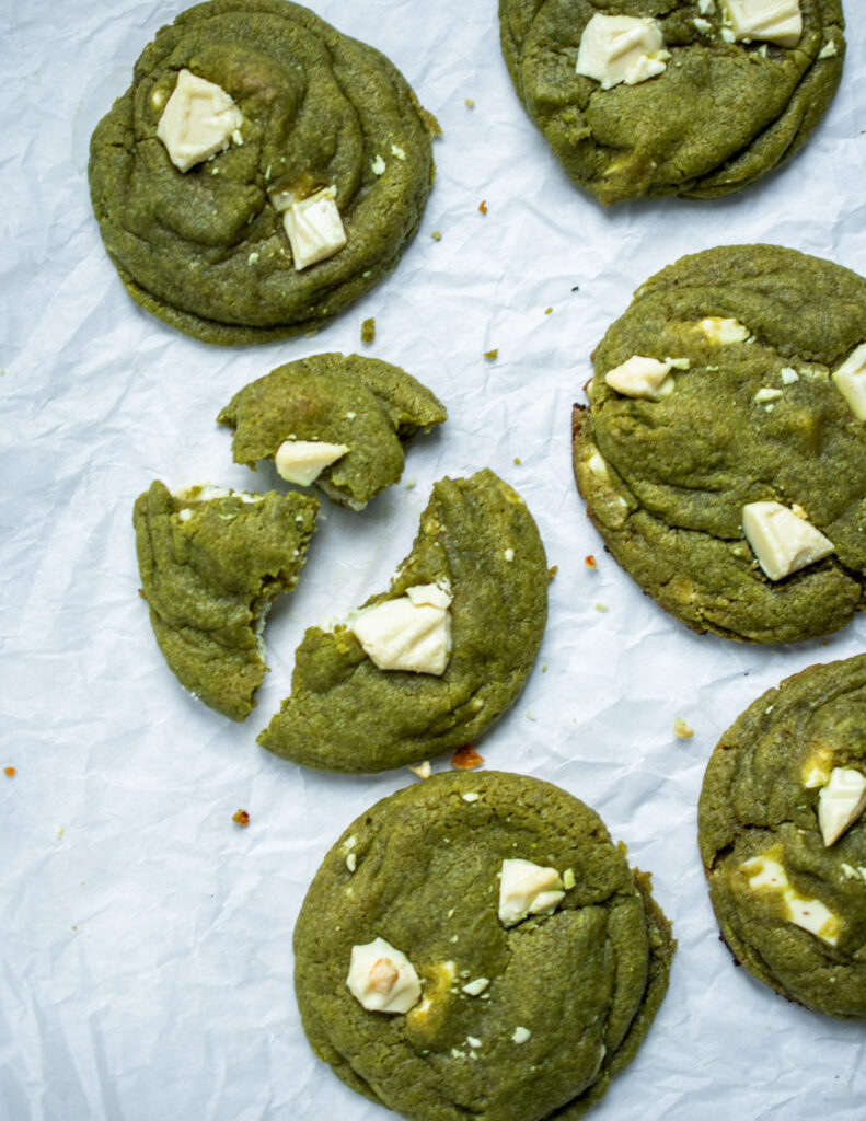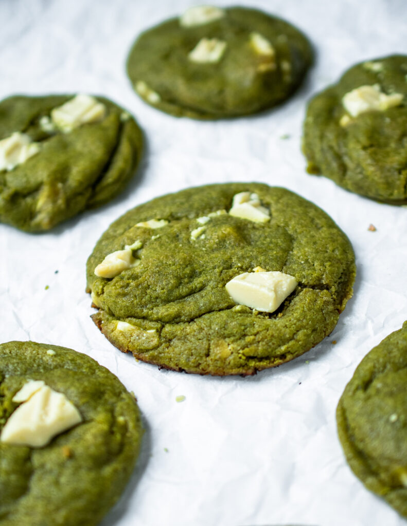 Recently, I have been obsessed with anything matcha. Yes, right on track with all the trends I’ve been seeing all over TikTok and Instagram. Apart from drinking matcha green lattes, I’ve been trying to discover as many different recipes as I can. After buying any matcha dessert I stumble upon, I’ve embarked on the next stage of making anything matcha flavoured. These matcha and white chocolate cookies are my first experiment, and they surely didn’t disappoint!