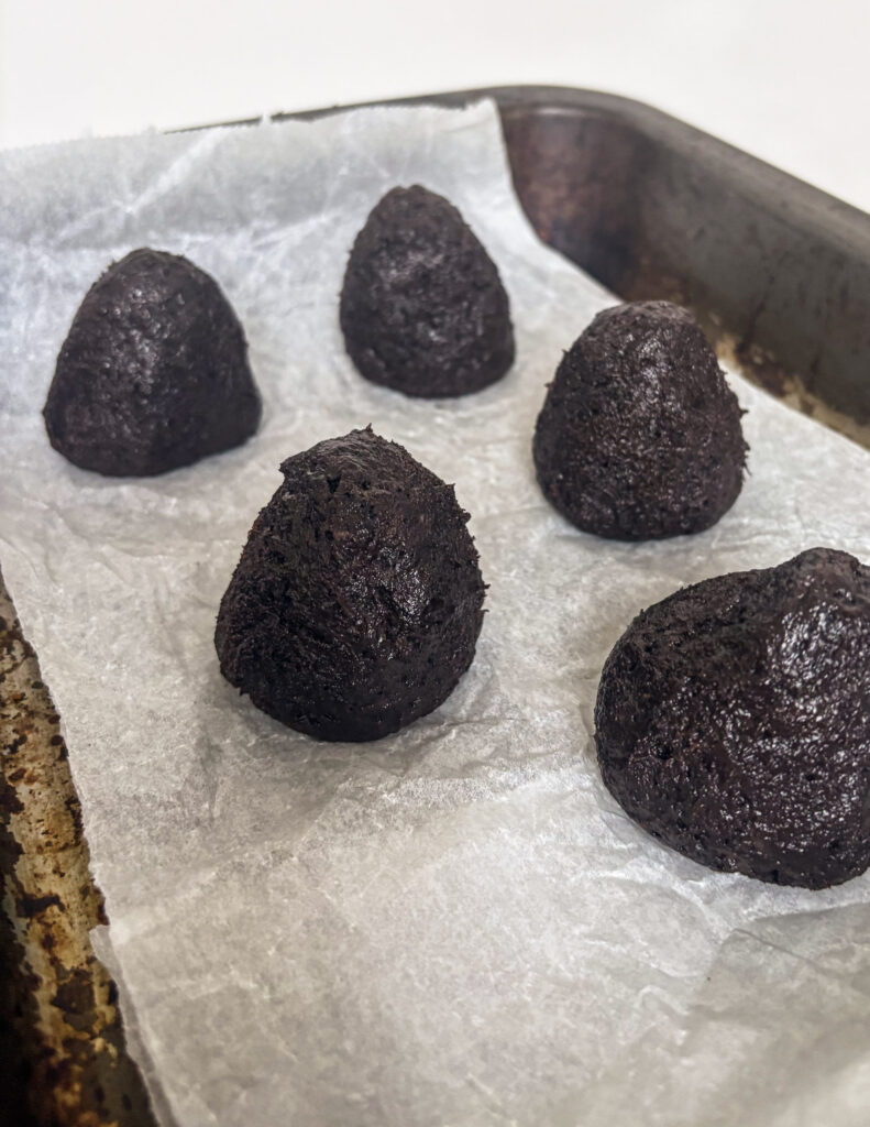 - Divide the mixture into 6. Shape each one into a ball then elongate the top.