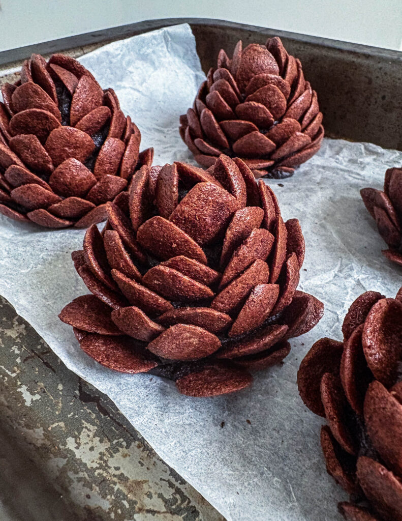These past years I have been seeing these pinecones on all social medias, they truly are everywhere! There are multiple different ways and recipes for them, varying from simple ones to other more elevated ones. This year I finally gave it a go, as I wanted to create something easy with minimal ingredients, yet will be an eye catcher on every table! These Oreo Pinecone Truffles fit perfectly that bill.